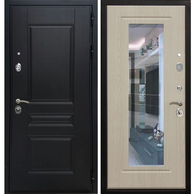 Входная стальная дверь Премиум - Н с Зеркалом Беленый дуб